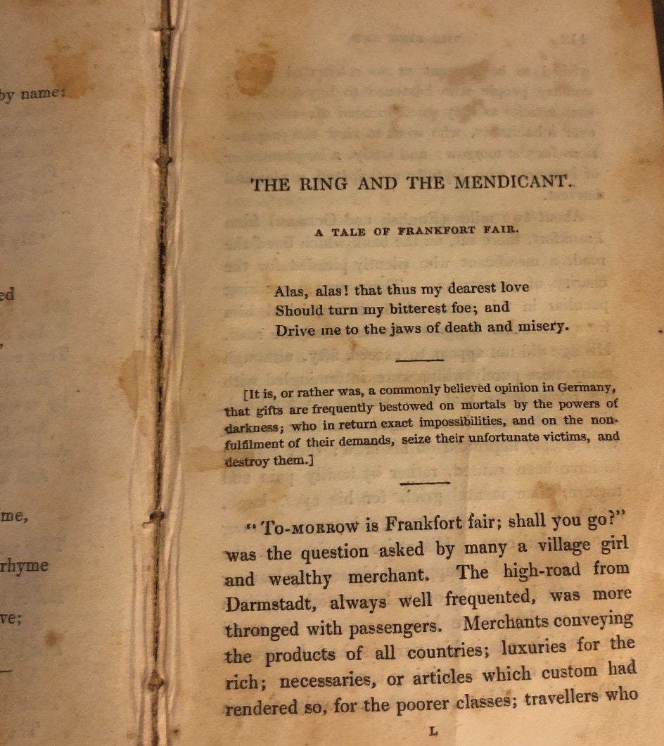The text that we are reading in the The Ring and The Mendicant was bequeathed to the author by Ambrose Martens after his demise shortly after the visit documented in the text. The collection was written up and then in 1827, printed in six volumes by the London Publisher, Thomas Hurst & Co., 65, St. Paul’s Churchyard, W. Morgan, 33 Old Bond Street, and W. Tait, Princes Street, Edinburgh.